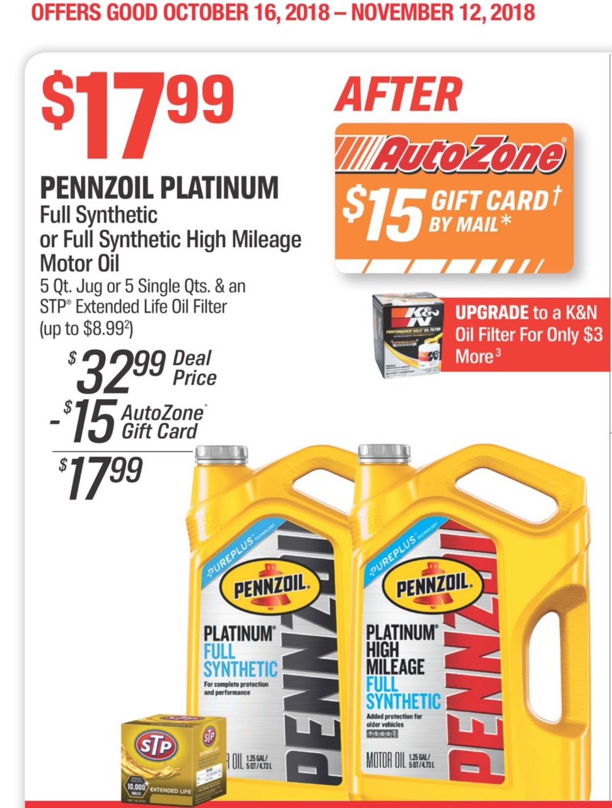 5 Qt Pennzoil Platinum Oil Or Platinum High Mileage And Stp Oil